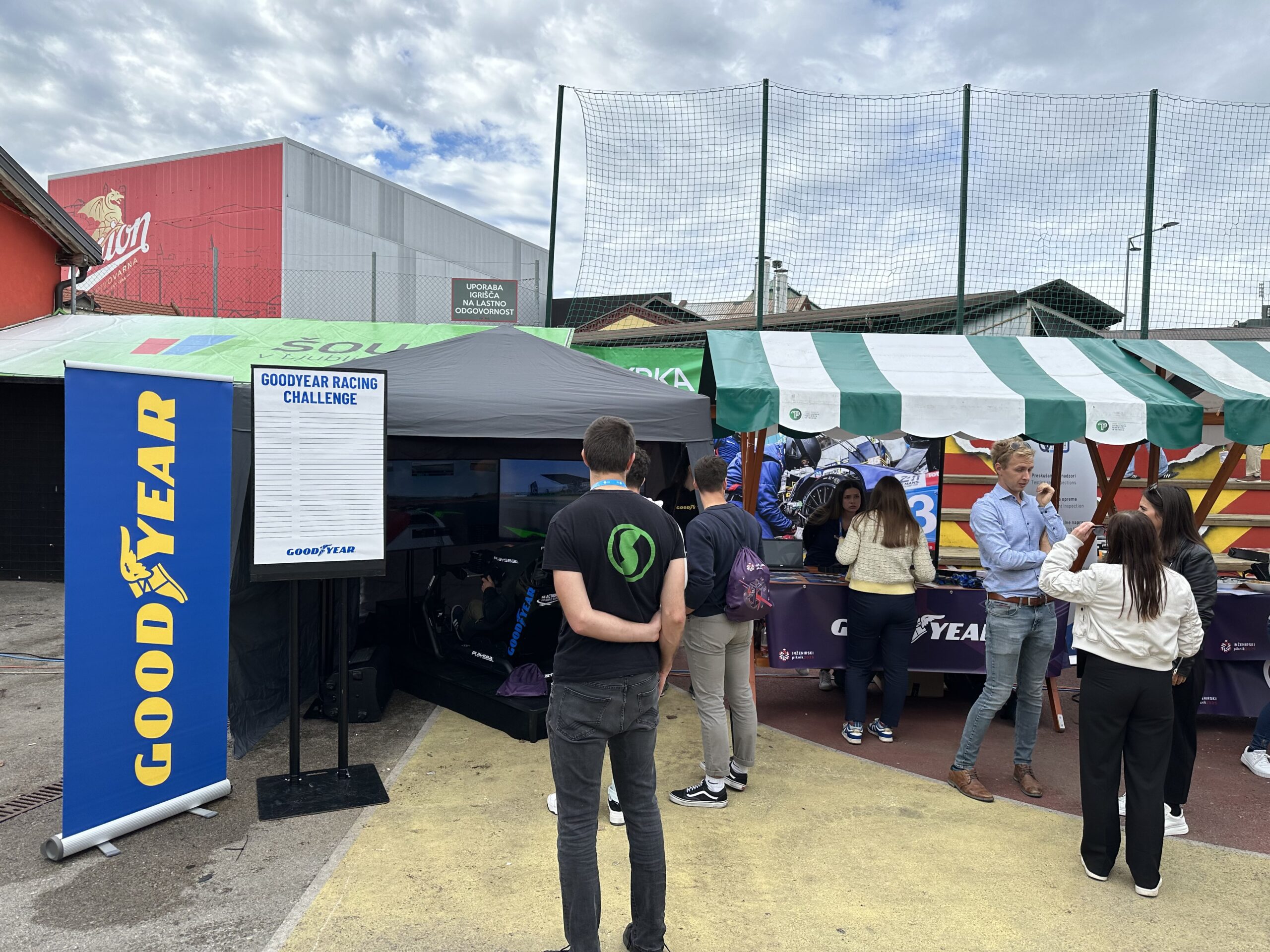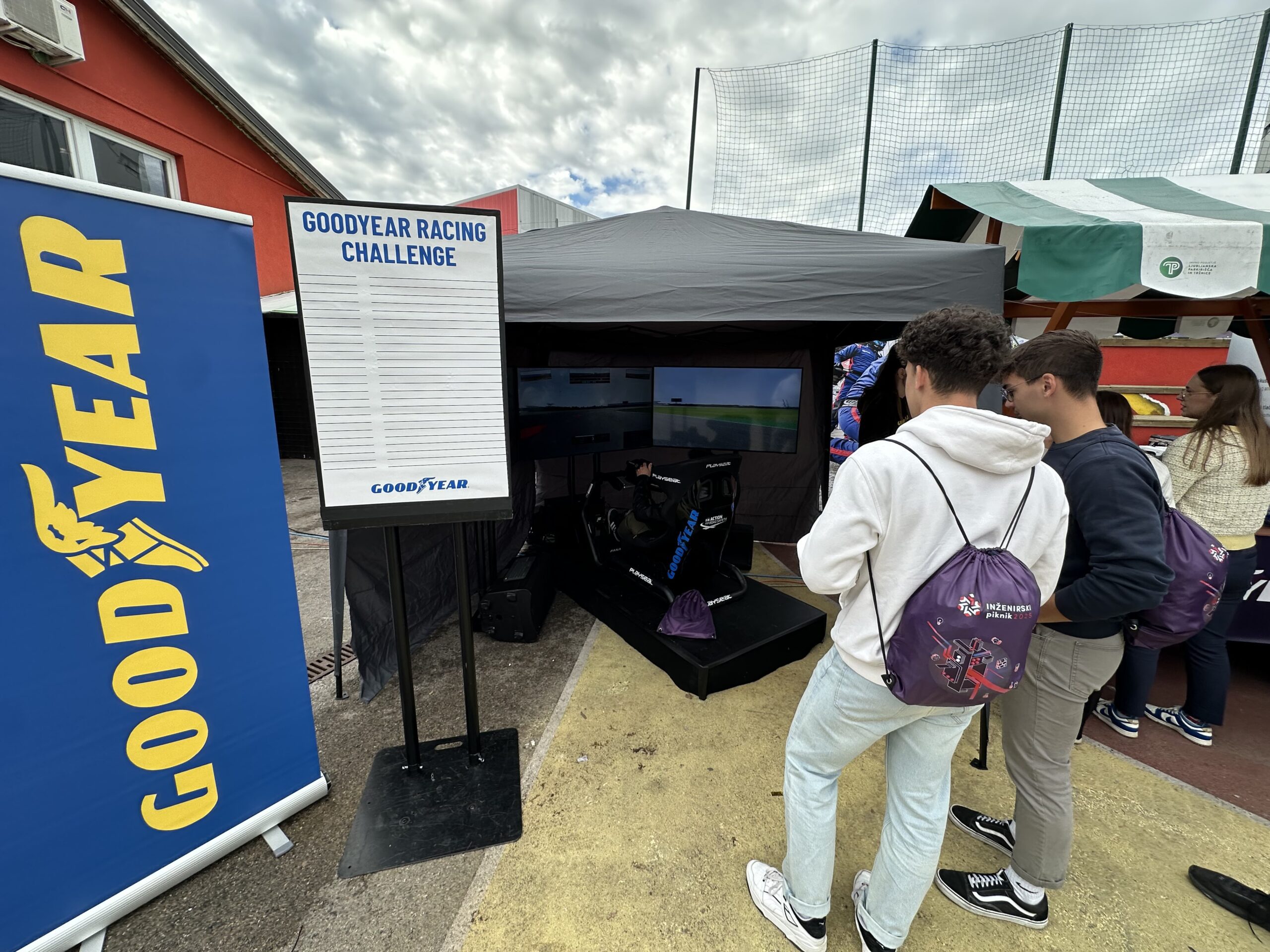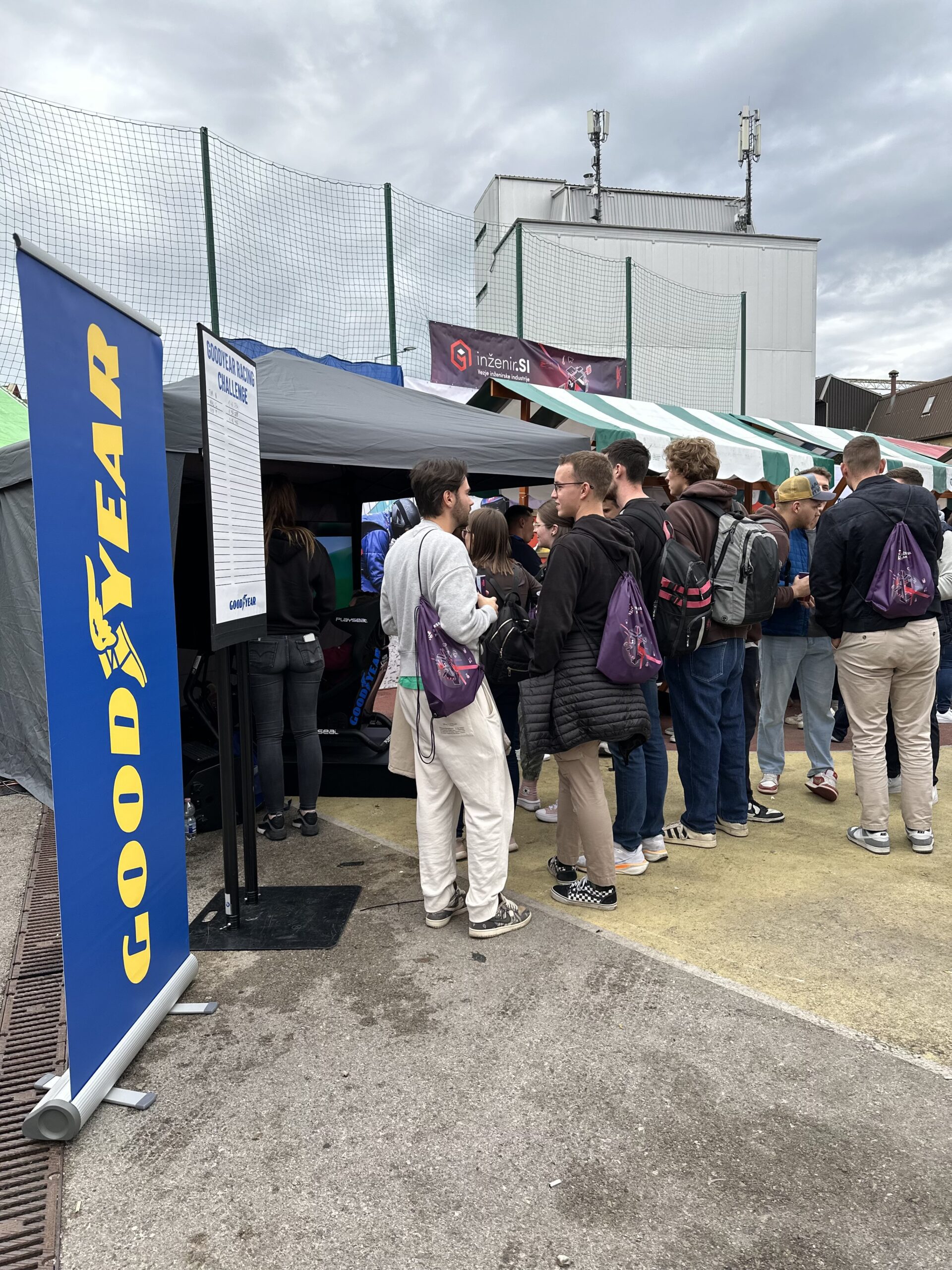Izvedba promocijske aktivnosti za Goodyear Slovenija na Inženirskem pikniku 2025, 9. oktobra 2025 na Študentskem kampusu v Ljubljani – v kontekstu katerega smo postavili en simulator dirkanja s tremi televizijami v surroundu in ozvočenjem, v celoti znamčeno z Goodyear logotipi.